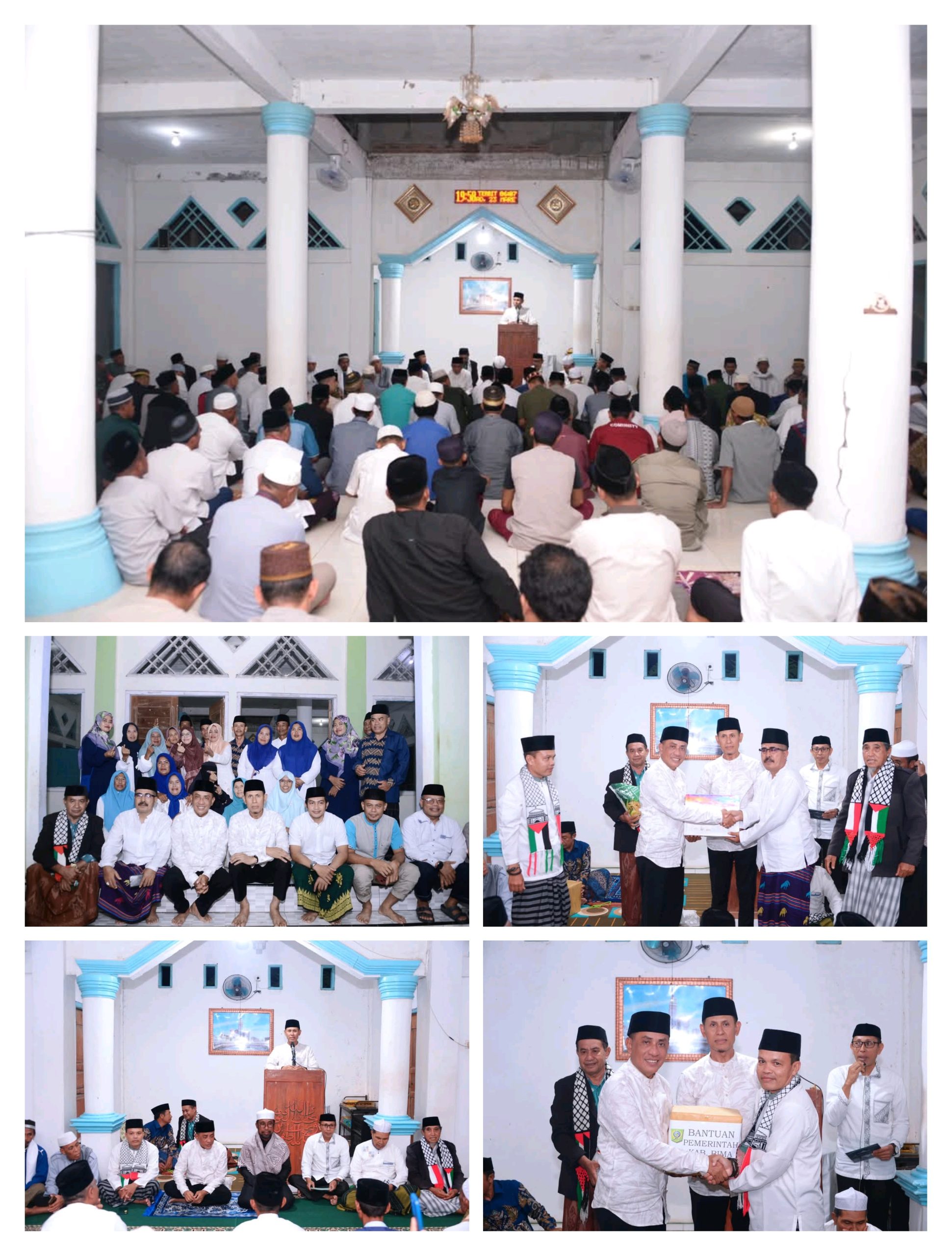 Pada kesempatan tersebut, Bupati Bima dan Wakil Bupati menyerahkan paket bantuan kitab suci Al-Quran kepada Camat Soromandi Zulkifli SH,MH dan 100 lembar sarung untuk dibagikan kepada warga beserta paket sembako dari Baznas Kabupaten Bima.