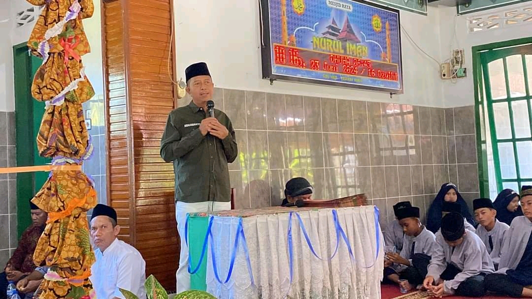 Hal itu disampaikan Wabup Risnawanto saat menghadiri acara khatam Alquran MDA Nurul Iman Nagari Giri Maju, Kecamatan Luhak Nan Duo, Minggu (23/6). Ia mengucapkan selamat kepada anak-anak yang telah berhasil menyelesaikan khatam Alquran, dan berharap ilmu agama yang diperoleh menjadi pondasi untuk masa depan, terutama dalam menghadapi perkembangan teknologi yang semakin maju.