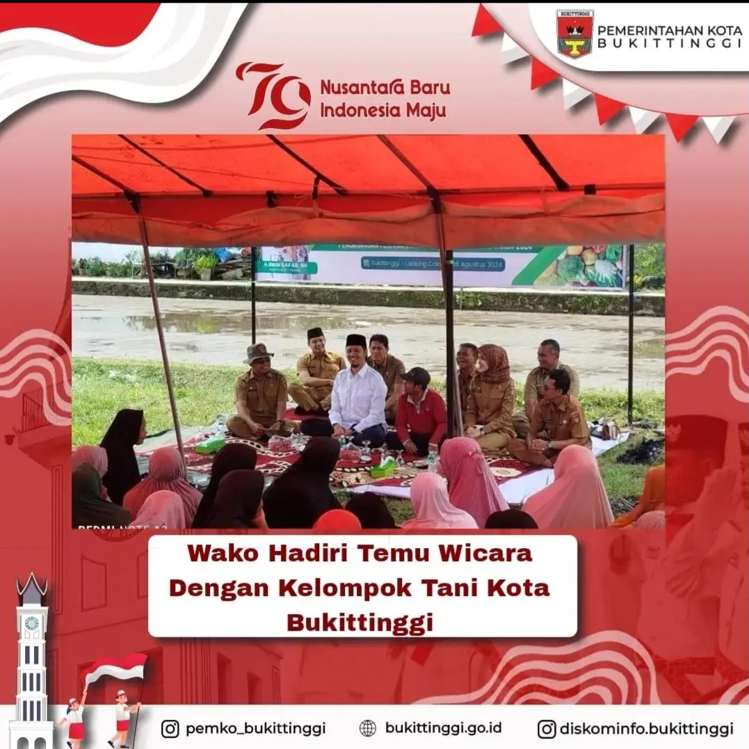 Kepala Dinas Pertanian dan Pangan, Hendry menyampaikan, Kegiatan temu wicara hari ini adalah untuk meningkatkan sinergi antara Pemerintah Kota Bukittinggi dan para pelaku utama serta pelaku usaha di bidang pertanian. Di Kota Bukittinggi terdapat 380 hektar lahan yang digarap oleh 146 kelompok tani se Kota Bukittinggi.
