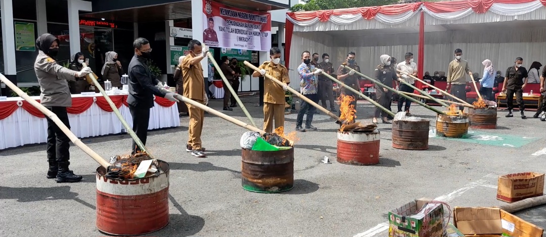 Pemusnahan barang bukti ini turut dihadiri oleh Kejari Bukittinggi djamaludin. Sh.Mh, asisten 1 Kota Bukittinggi, Isra Yonza, mewakili Walikota Bukittinggi, Dandim 0304 Agam, Letkol.Arm Bayu ardhitya Nugroho.SH.M.Han, Kapolresta Bukittinggi Kombespol.yessi kurniati.S.I.K, kepala BNNK M.Febrian Jufril, kepala pengadilan kota bukittinggi, kasat Narkoba Polresta Bukittinggi Syafri beserta jajaran Kejari kota Bukittinggi.