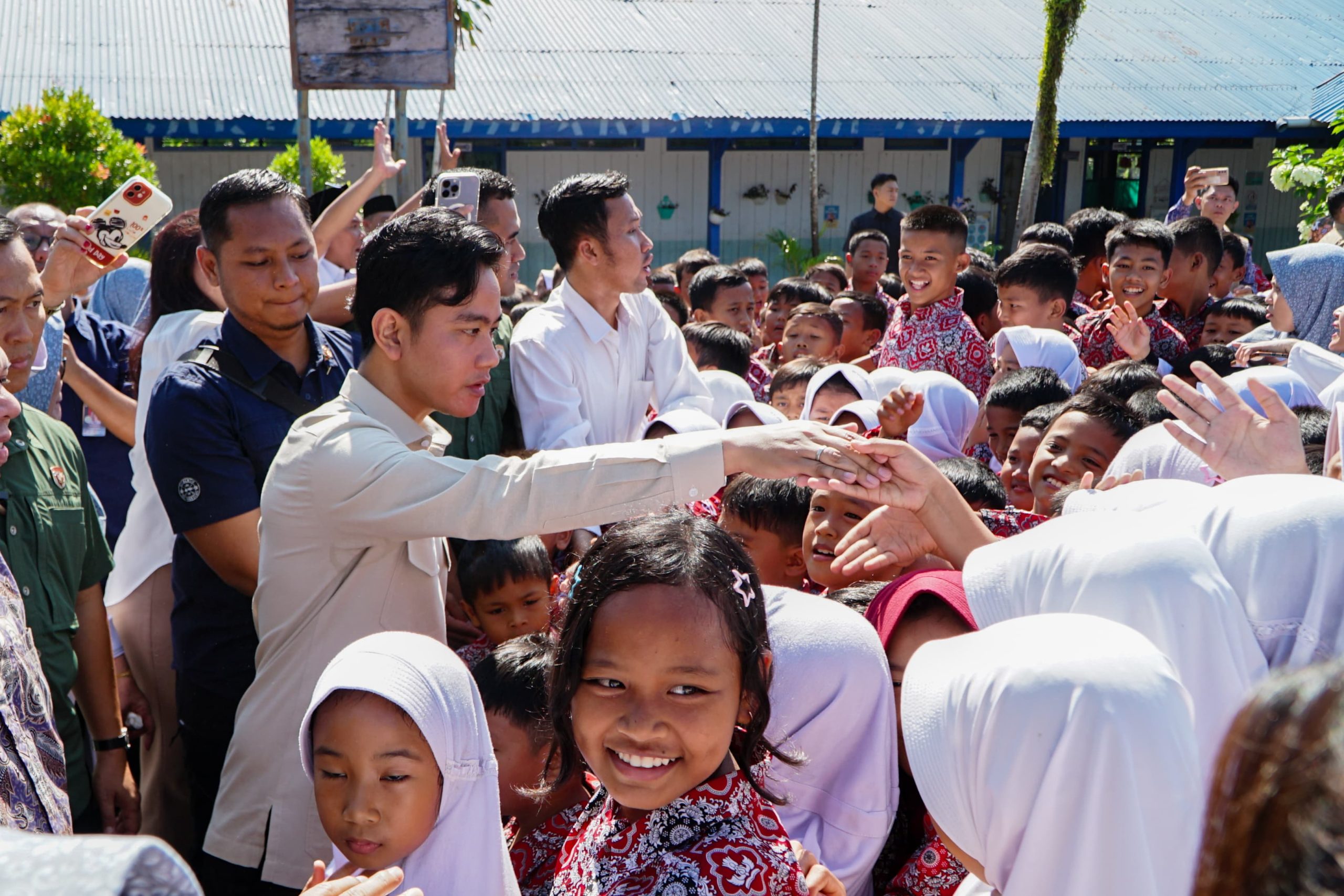 Tiba di sekolah Gibran langsung menuju ruang kelas dan disambut antusias oleh para siswa. Gibran memantau proses MBG dan berdialog dengan siswa.