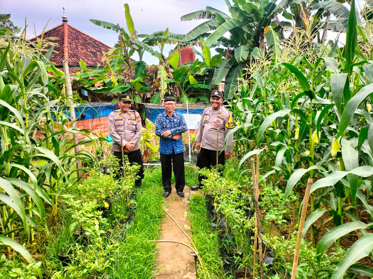 *BANYUASIN – Kanit Binmas Polsek Betung Itu Iptu Hendra Siahaan didampingi Bhabinkamtibmas Bripka Ferdy Kaisah, melakukan peninjauan langsung ke lahan Pekarangan Pangan Bergizi (P2B) di Kebun Desa Taja Mulya Kecamatan Betung, Kabupaten Banyuasin.*