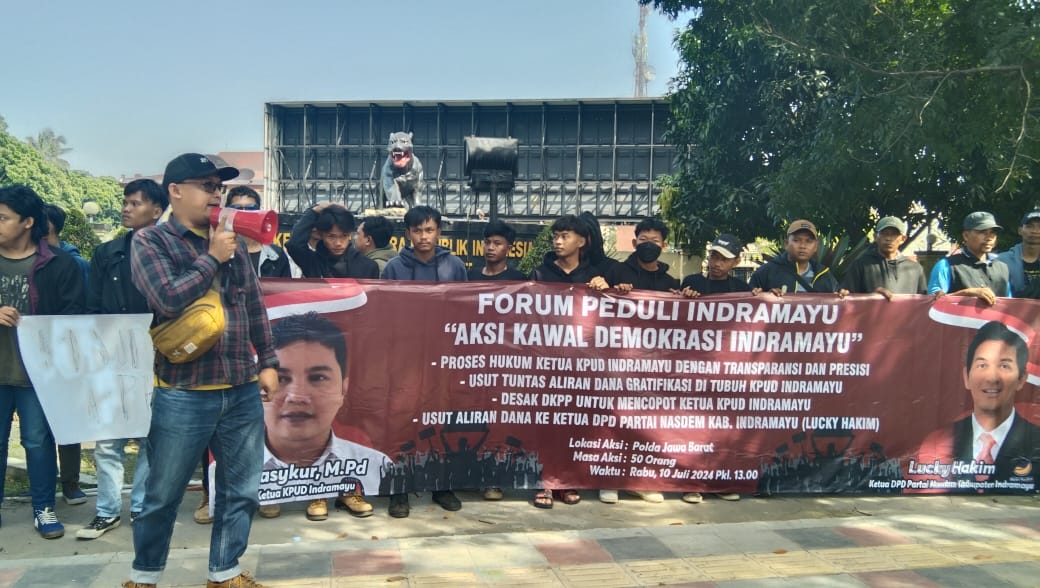 Bandung Jabar,- kompas86.com- Forum Peduli Indramayu (FPI) gelar aksi damai kawal demokrasi Indramayu di Mapolda Jawa barat desak terkait kasus dugaan gratifikasi oleh oknum ketua KPU Indramayu yang melibatkan penyelengara PPK tingkat kecamatan