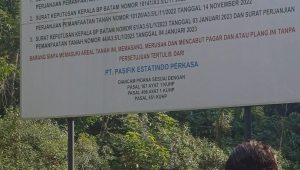 Pada papan pengumuman yang dipajang di depan lahan eks tarikan dari PT DTL atau Hotel Purajaya itu, Pasifik Group menuliskan: ”Tanah ini dalam penguasaan PT Pasifik Estatindo Perkasa berdasarkan: (1) Surat Keputusan Kepala BP Batam Nomor 8066/A3.5/L/9/2022 Tanggal 07 September 2022 dan Surat Perjanjian Pemanfaatan Tanah Nomor 7860/A3.5/L/9/2022 Tanggal 8 September 2022.