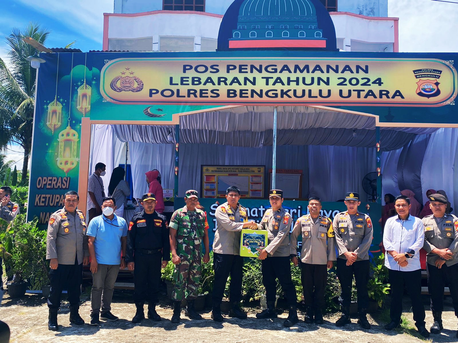 Kompas86.Com Bengkulu Utara-Kapolres bengkulu utara AKBP Lambe Patabang Birana,S.I.K,,MH bersama ketua bhayangkari cabang bengkulu utara Ny Elisa Lambe membagikan tali asih kepada personel yang bertugas di pos pengamanan dan pos pelayanan lebaran senin (15/04/2024).