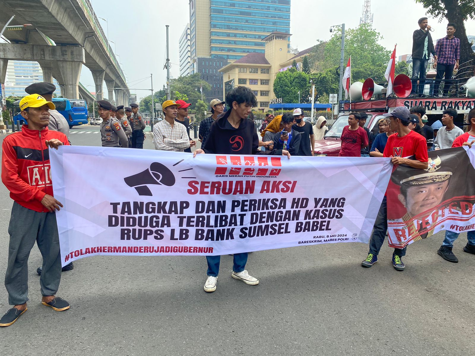 Hal ini sebagaimana disampaikan oleh Diran selaku Koordinator Aksi, dalam orasi aksinya di atas mobil komando mengatakan bahwa hari ini dari Sumatera Selatan datang ke Mabes Polri untuk supaya Mabes Polri mendengar ada kekeliruan yang terjadi di Sumatera Selatan yang dilakukan oleh mantan Gubernur Sumsel, Herman Deru. bukan hanya persoalan.Permasalahannya hari ini adalah bukan saja persoalan Bank Sumsel Babel saja tetapi banyak kasus-kasus di Sumatera Selatan, tetapi Mabes Polri tutup mata.