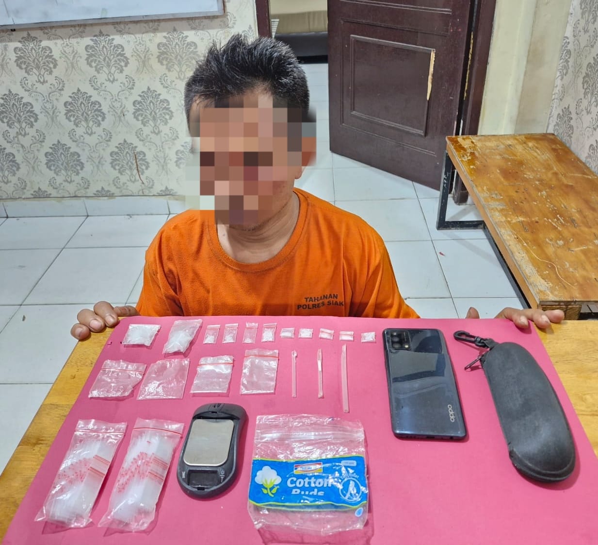“Saat hendak diamankan, tersangka sempat membanting handphone miliknya hingga pecah, diduga untuk menghilangkan jejak komunikasi,” ujar Kasat Narkoba Polres Siak.