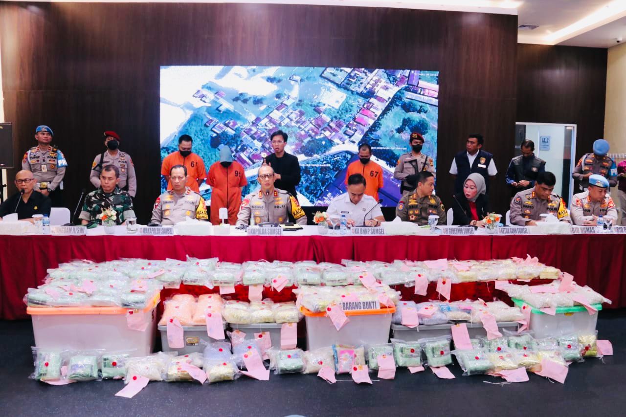 Hal tersebut disampaikan Kapolda Sumatera Selatan Irjen A Rachmad Wibowo saat menggelar konferensi pers bersama Ka BNNP Sumsel, Kasatpol PP mewakili PJ Gubernur, Asintel Kajati Sumsel, Wakapolda, Asintel Korem, Ketua Yayasan Gugus Antisipasi Narkoba Sumsel dimapolda pada Minggu (10/2/2024).