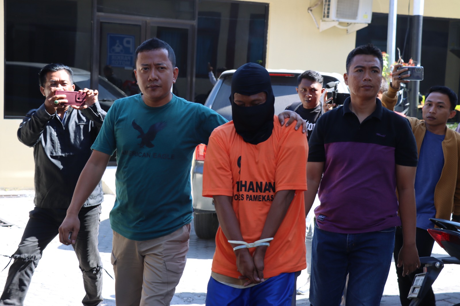 Kasatreskrim Polres Pamekasan AKP Doni Setiawan didampingi Kasihumas Polres Pamekasan AKP Sri Sugiarto saat konferensi pers yang digelar di Gedung Bhayangkara Polres Pamekasan mengatakan, pelaku yang berhasil diamankam oleh Tim Sakera Sakti Satreskrim Polres Pamekasan berinisial AR (34 Th), warga Jl. Sersan Mesrul Kel. Gladak anyar Kec./Kab. Pamekasan.