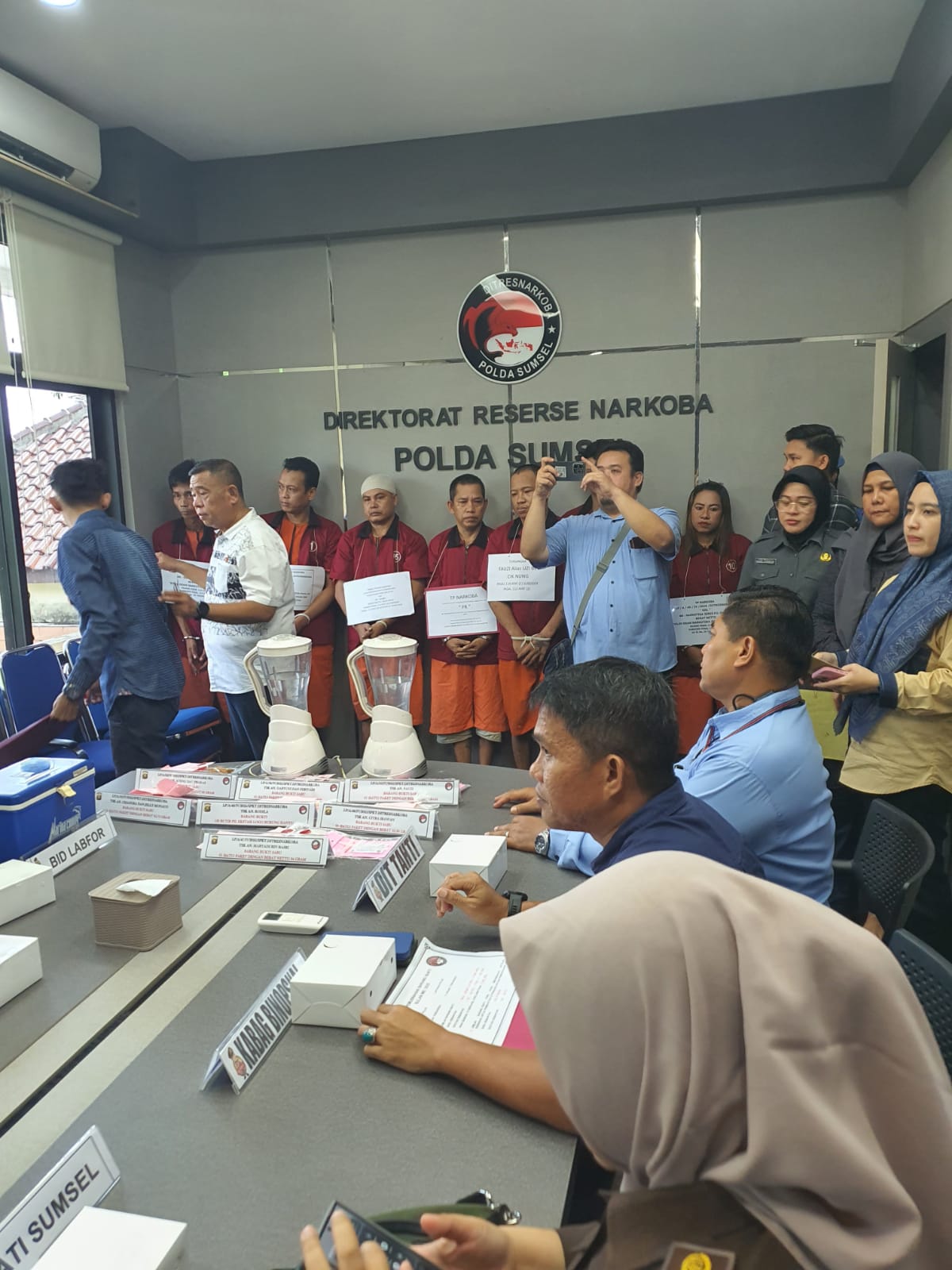 Pemusnahan tersebut turut disaksikan tersangka serta dihadiri oleh Plt Kasubbid Penmas Bidhumas Polda Kompol Menang SH Kabag Bin Ops Ditresnarkoba Polda Sumsel AKBP C.S Panjaitan , S.E,MSi dan perwakilan dari Kejaksaan Sumsel dan Pengadilan Negeri Palembang