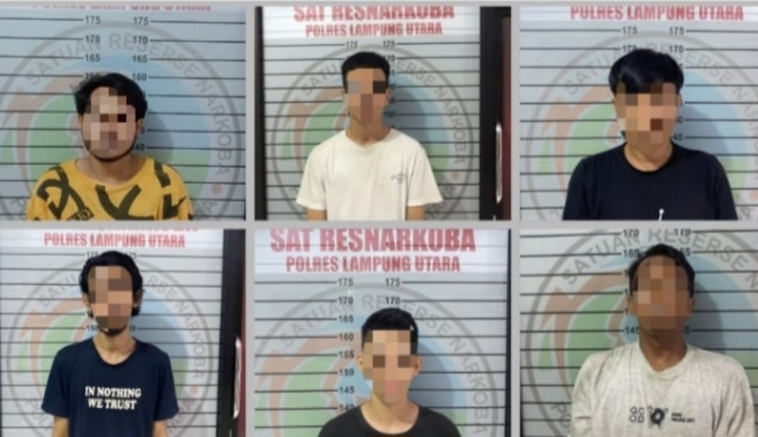 “Kini ke enama pelaku berikut barang bukti sudah diamankan di Polres Lampung Utara guna proses penyidikan lebih lanjut,” terang Kasat Narkoba AKP Widodo Prasojo.