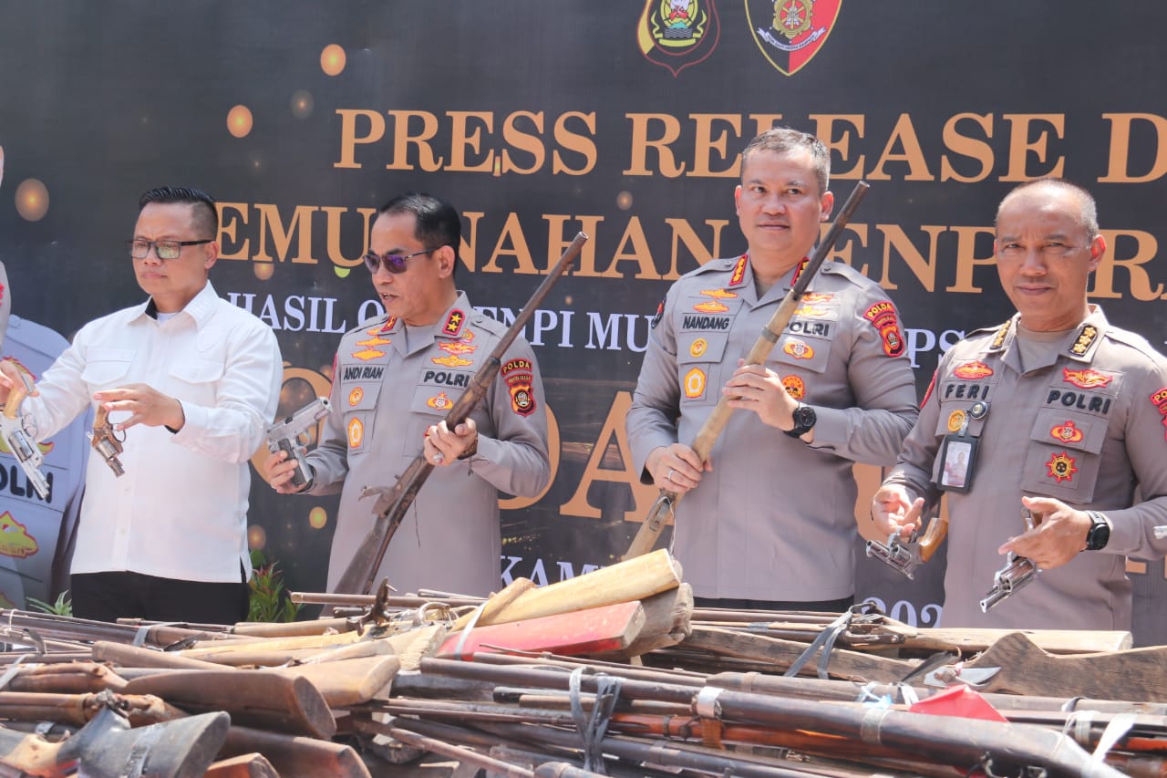 “Selama operasi senpi Musi 2025 Polda Sumsel berhasil mengamankan 32 orang dari 31 kasus yang diungkap,”kata Andi Rian kepada wartawan usai pemusnahan.