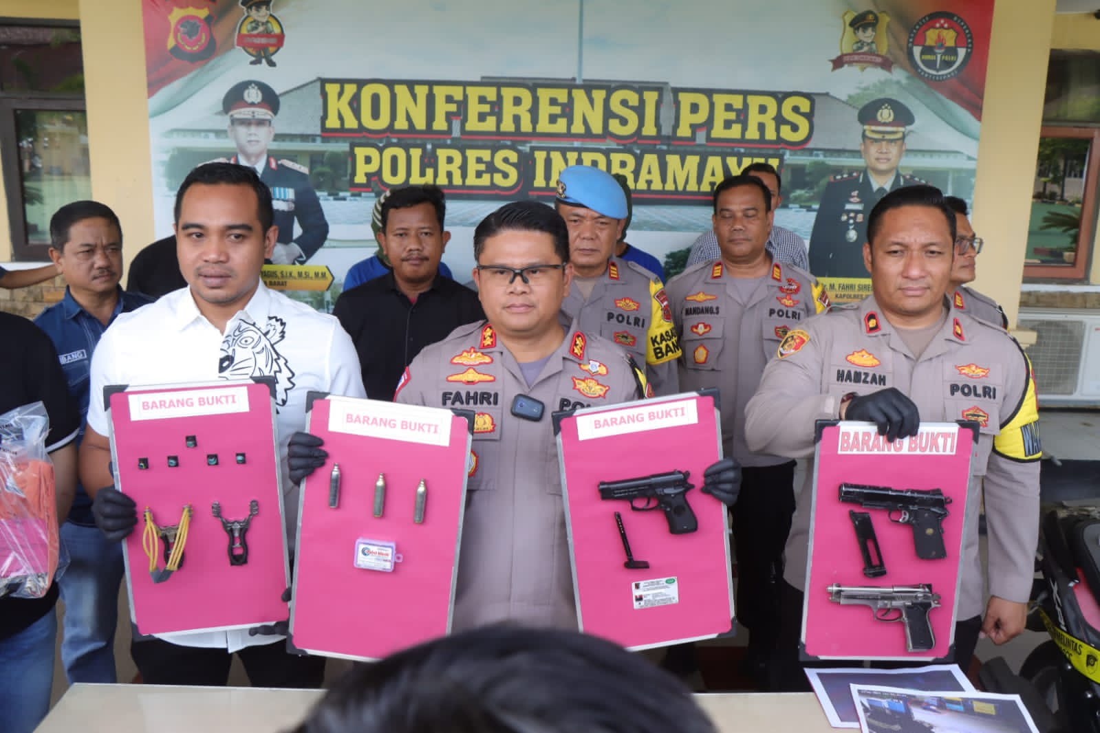 Kapolres Indramayu, AKBP Dr. M. Fahri Siregar S.H., S.I.K., M.H., menyampaikan bahwa kejadian ini bermula dari laporan korban yang menyebutkan adanya kerusakan pada kaca kafe Manunggal miliknya yang diduga akibat tembakan.