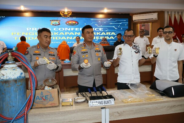 Direktorat Reskrimsus Polda Sulawesi Utara menggagalkan pengiriman 10 kg emas diduga hasil pertambangan emas tanpa izin (PETI) di wilayah hukum Polda Sulut.