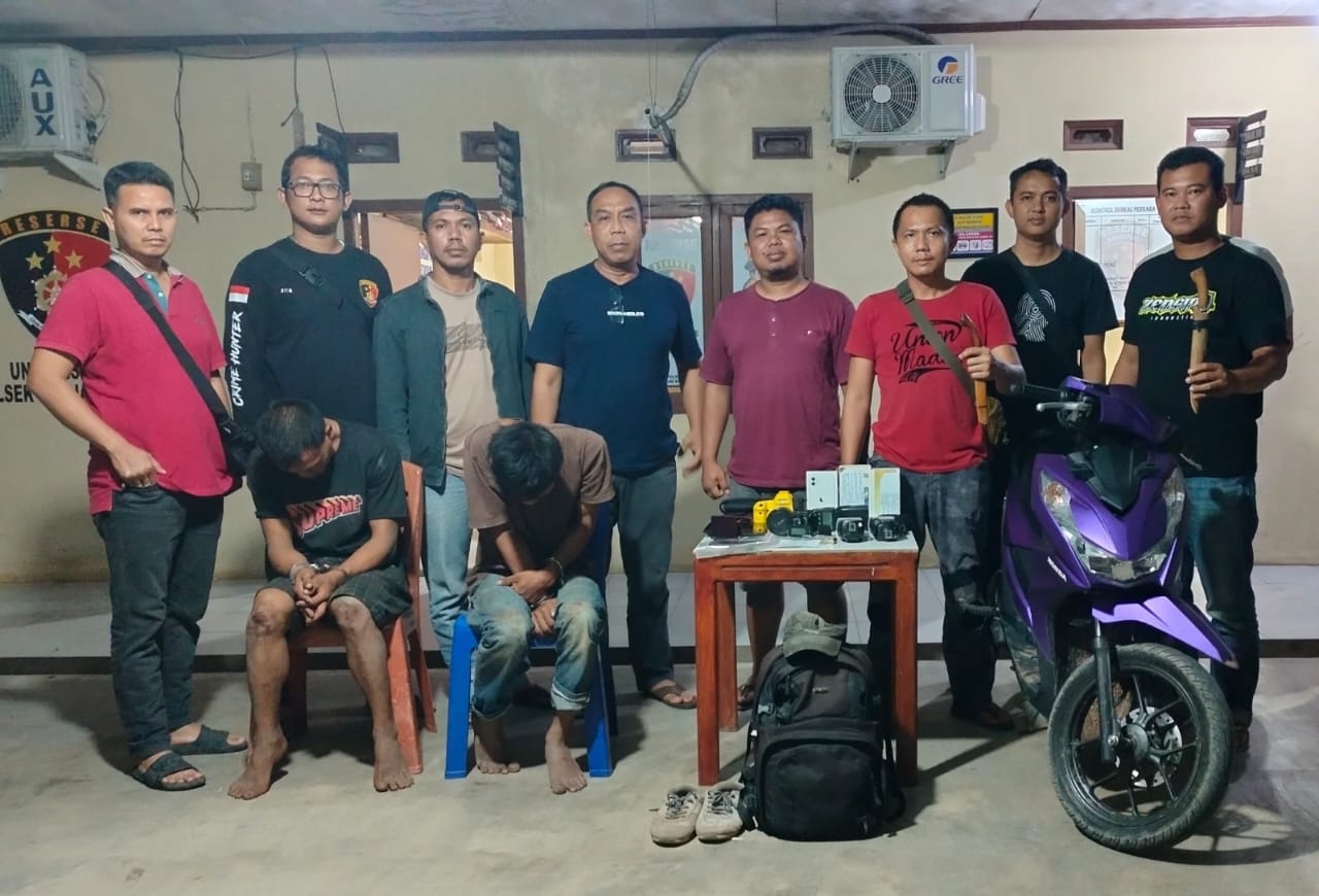 “Hari Kamis (28/03/2024), sekitar pukul 15.00 WIB, petugas kami dibantu Tekab 308 Presisi Polres menangkap dua pelaku spesialis curat dengan sasaran rumah warga. Mereka ditangkap saat sedang berada di salah satu rumah kontrakan di Kampung Dwi Warga Tunggal Jaya, Kecamatan Banjar Agung, Kabupaten Tulang Bawang,” kata Kapolsek Banjar Agung, Kompol M Taufiq, SH, MH, mewakili Kapolres Tulang Bawang, AKBP James H Hutajulu, SIK, SH, MH, MIK, Jum’at (29/03/2024).
