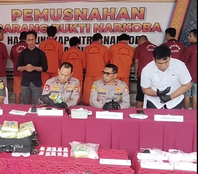 Pemusnahan narkoba yang melaksanakan hasil pengungkapan kasus ditresnarkoba polda dan satresnarkoba Polrestabes Palembang sebagai bentuk dukungan pelaksanaan program Asta Cita yang dicanangkan presiden Prabowo Subianto.