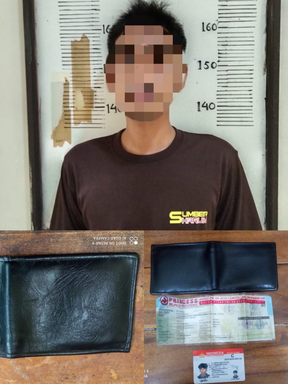 Selain mengamankan pelaku petugas juga mengamankan barang bukti dompet, 1 buah SNTK dan SIM milik korban.