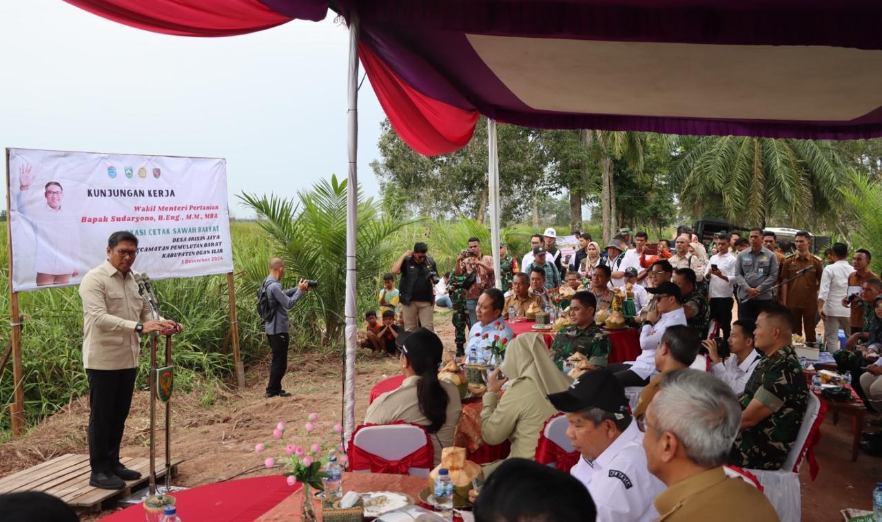 Dalam sambutannya, Wamen Pertanian RI menekankan pentingnya pengolahan lahan rawa menjadi lahan produktif melalui program cetak sawah. Ia juga mengapresiasi peran aktif TNI dan Polri dalam mendukung program ketahanan pangan nasional serta menjanjikan bantuan berupa alat cetak sawah untuk mempercepat realisasi program tersebut.