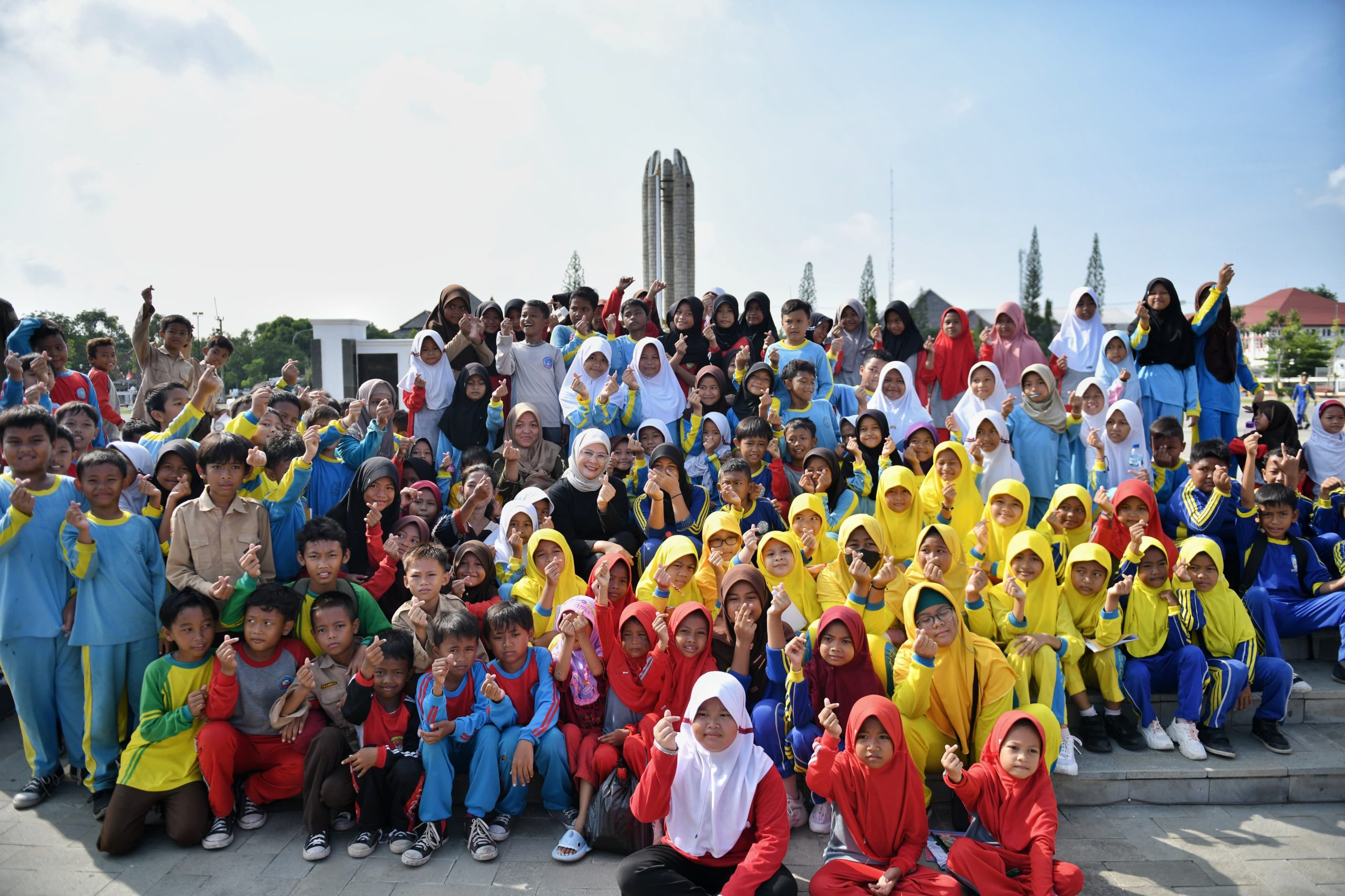 Sebelum bertemu dengan kaum milenial, Bupati Indramayu Hj. Nina Agustina melihat langsung Alun-Alun Puspawangi bersama dengan para pelajar dan masyarakat yang tengah menikmati Alun-Alun Puspawangi.
