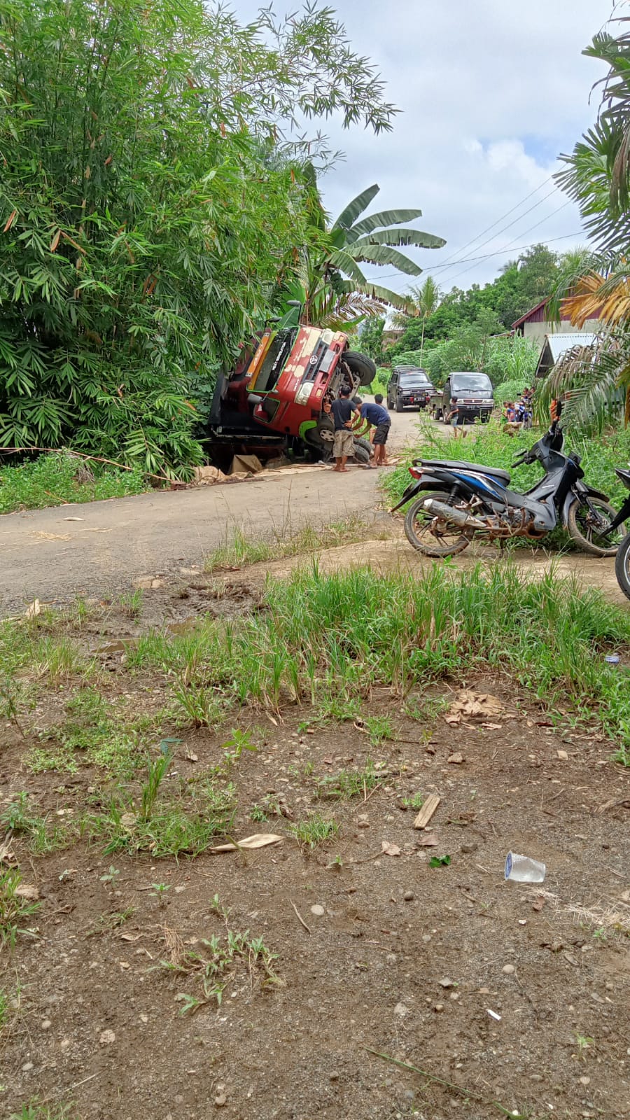 Hal ini di alami oleh Arnadi,warga rena panjang yang membawa mobil truk warna merah menuju talang kebun dengan maksud hendak mengantar material pasir milik warga.