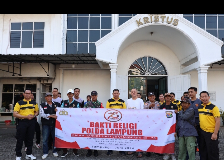 Selain kegiatan pembersihan, Umi melanjutkan, Polda Lampung juga menyalurkan bantuan berupa pemberian kitab suci dan alat-alat kebersihan untuk setiap tempat yang disasar.