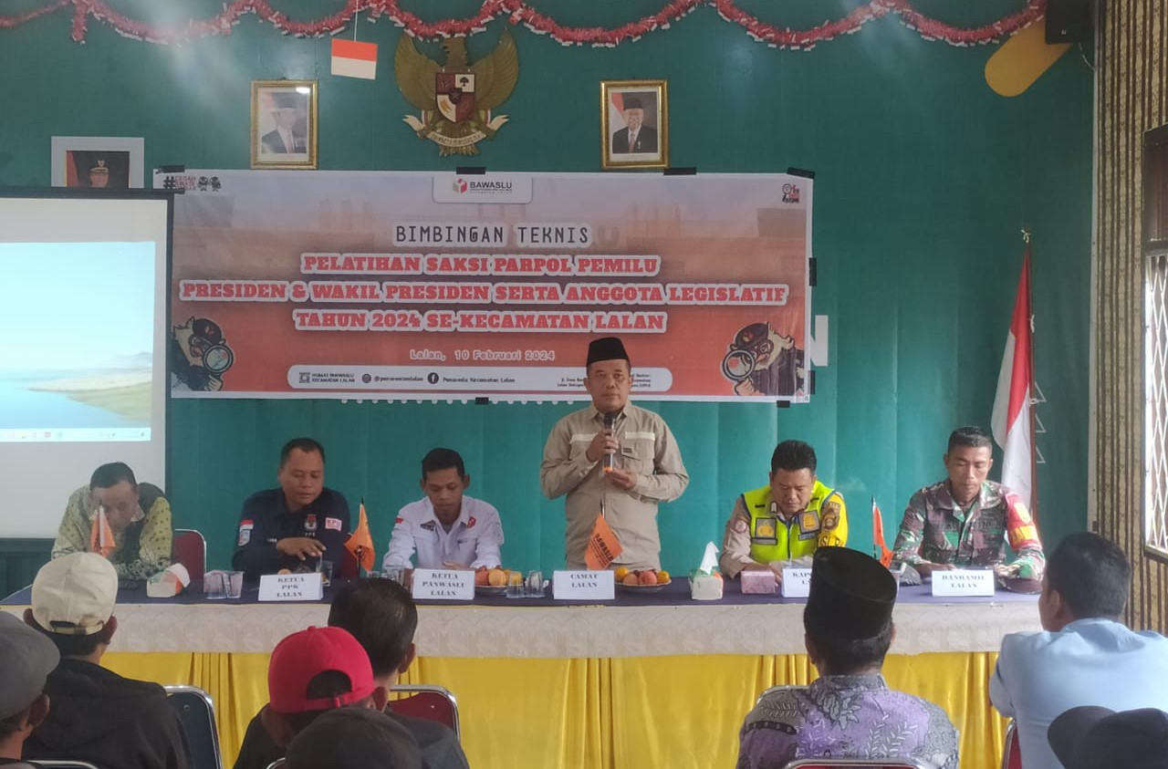 Adapun rangkaian yaitu, Regristrasi Peserta, Menyanyikan Lagu Indonesia Raya dan Mars Mars Pengawas Pemilu, Laporan Ketua Panitia Pelaksana, Sambutan dari Ketua Panwaslu Kecamatan Lalan Sekaligus Membuka Pelatihan, Sambutan Camat Lalan, Sambutan Ketua PPK Lalan, Pembacaan Doa, Pemberian Materi” Peran saksi parpol dalam pengawasan pemungutan penghitungan suara pada pemilu serentak tahun 2024″ dan Penutup.