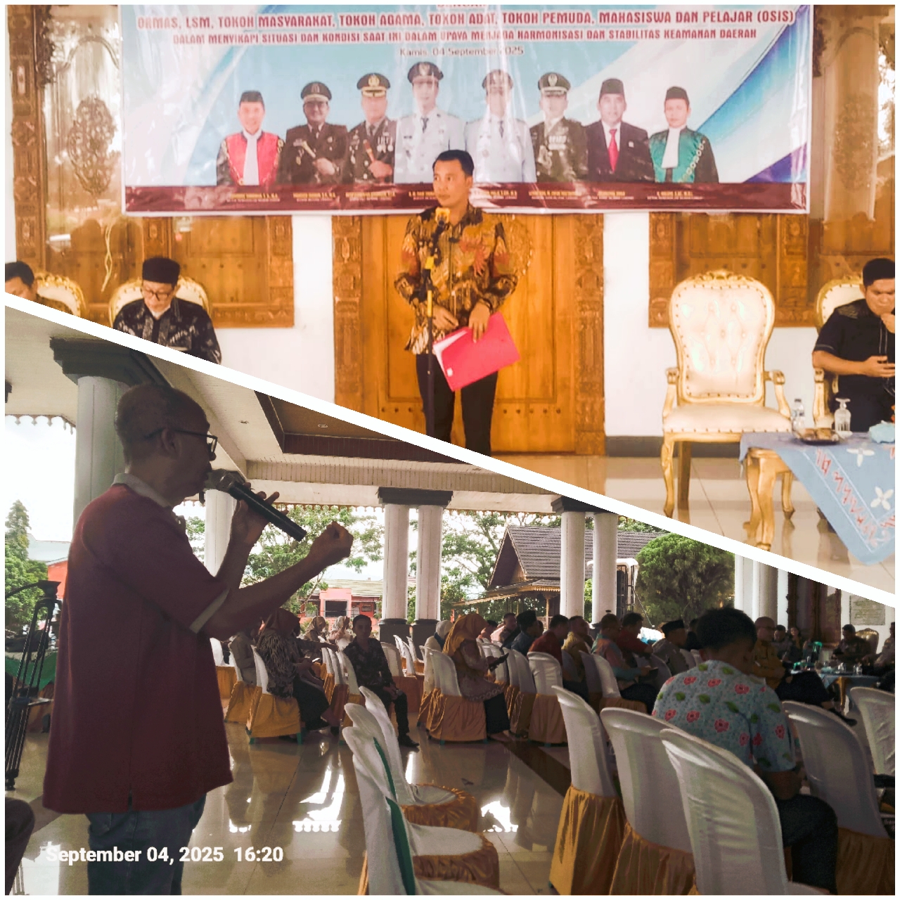 Rejang Lebong ( Bengkulu ) Kompas86.com Bupati bersama Forkopimda (Forum Koordinasi Pimpinan Daerah) dan elemen masyarakat seperti Ormas (Organisasi Kemasyarakatan), LSM (Lembaga Swadaya Masyarakat), dan mahasiswa melakukan berbagai upaya untuk menjaga harmonisasi dan stabilitas keamanan khususnya di kabupaten Rejang Lebong,acara berlangsung Didepan Rumah Dinas Bupati,Kamis 4 September 2025.