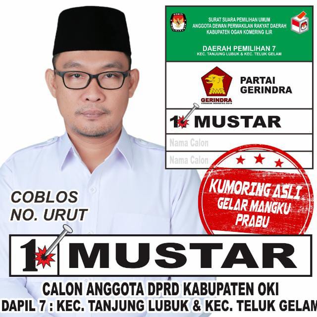 Berdasarkan penghitungan global di dapil 7 caleg no urut. 1 dari partai Gerindra nama Mustar Amd Unggul dan menduduki salah satu kursi dari tiga kursi pada dapil 7, sumber C1 hasil pada tiap TPS dan hitungan cepat, sosok yg sederhana namun tegas Berwibawa akan Mewakili Rakyat OKI khususnya, ujar Asan