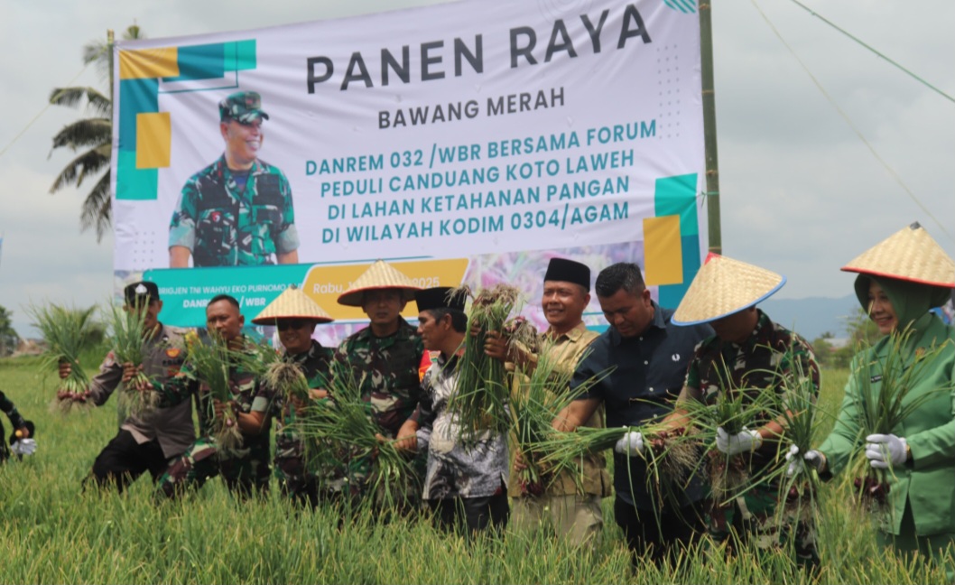 Danrem 032/WBR Brigjend. TNI Wahyu Eko Purnomo Hadiri Panen Raya Bawang Merah dan Resmikan Forum Peduli Candung Koto Laweh (FPCKL)