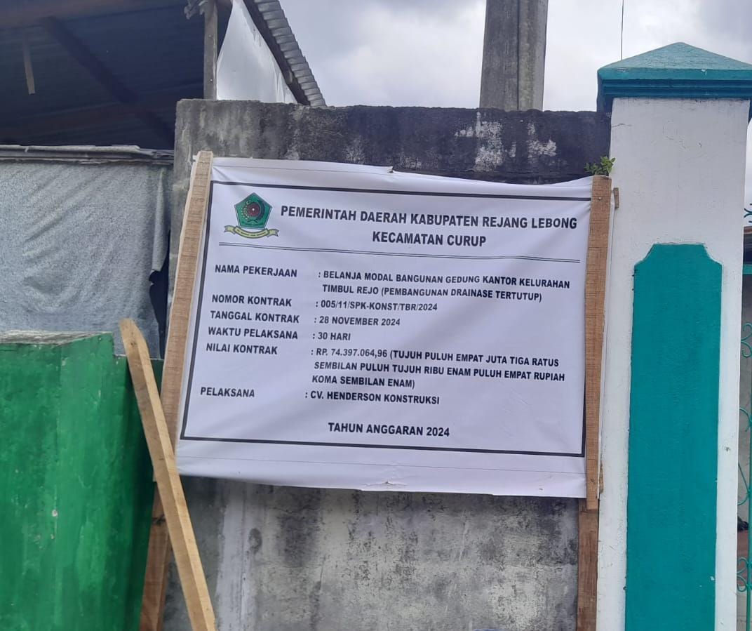 Menariknya lagi dipapan informasi menyebutkan bahwa kegiatan tersebut merupakan pembangunan kantor lurah timbul Rejo bukan pembangunan ataupun pembuatan drainase.