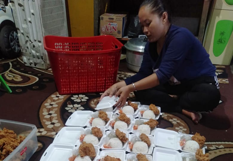 Sebanyak 20 porsi ayam geprek dibagikan bang Ali si polisi baik ini kepada santri Tpq Al-Hikmah kertapati palembang ini melalui kurir karena beliau masih menjaga istri yang sakit di rumah sakit umum pusat DR moh Hoesin