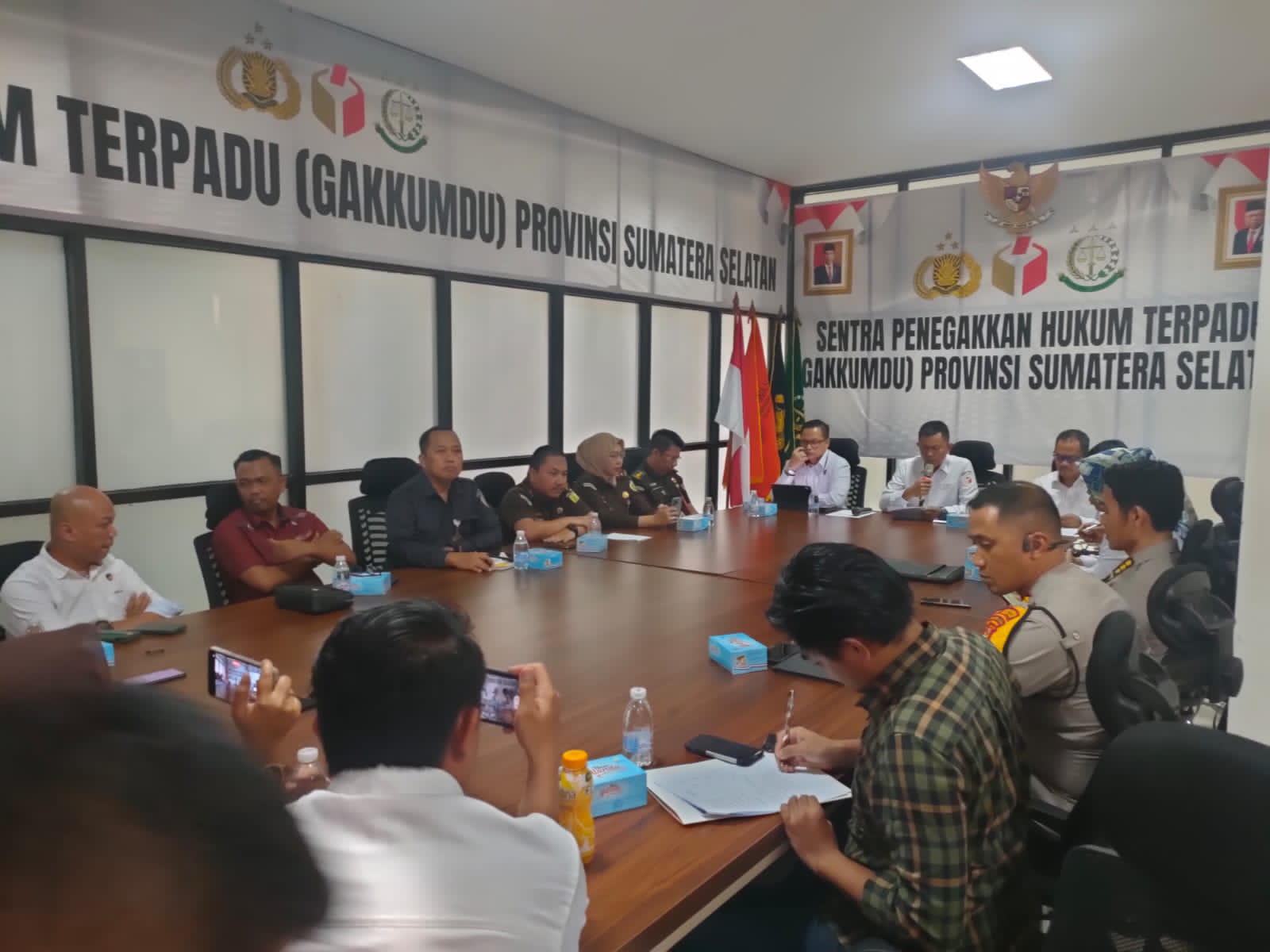 Sentra Penegakan Hukum Terpadu (Gakkumdu) Provinsi Sumatera Selatan menggelar konferensi pers Rabu sore (31/1/2024) diruang media center Bawaslu Provinsi Sumsel.
