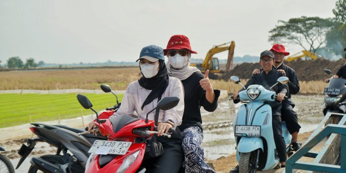 Mendengar langsung adanya keluhan petani tersebut, Bupati Nina Agustina bersama Kepala SKPD langsung meninjau sumber permasalahannya dengan menggunakan kendaraan bermotor.