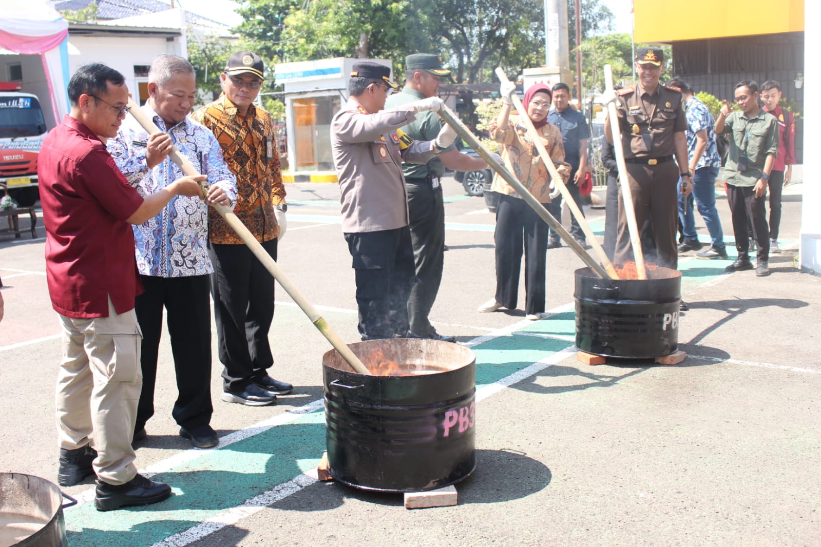 Pemusnahan barang bukti tersebut dilakukan setelah penandatanganan berita acara oleh Kepala Kejaksaan Negeri Indramayu (Kajari) didampingi dan disaksikan oleh Bupati Indramayu Nina Agustina, Kepala Rupbasan Indramayu,Ketua Pengadilan Negeri Indramayu, Kapolres Indramayu, Dandim 0616 Indramayu, Kepala Lapas Indramayu, Kasatpol PP & Damkar, Kepala Dinas Kesehatan Indramayu, Kepala Dinas Pendidikan dan Kebudayaan Indramayu serta tamu undangan lainnya.