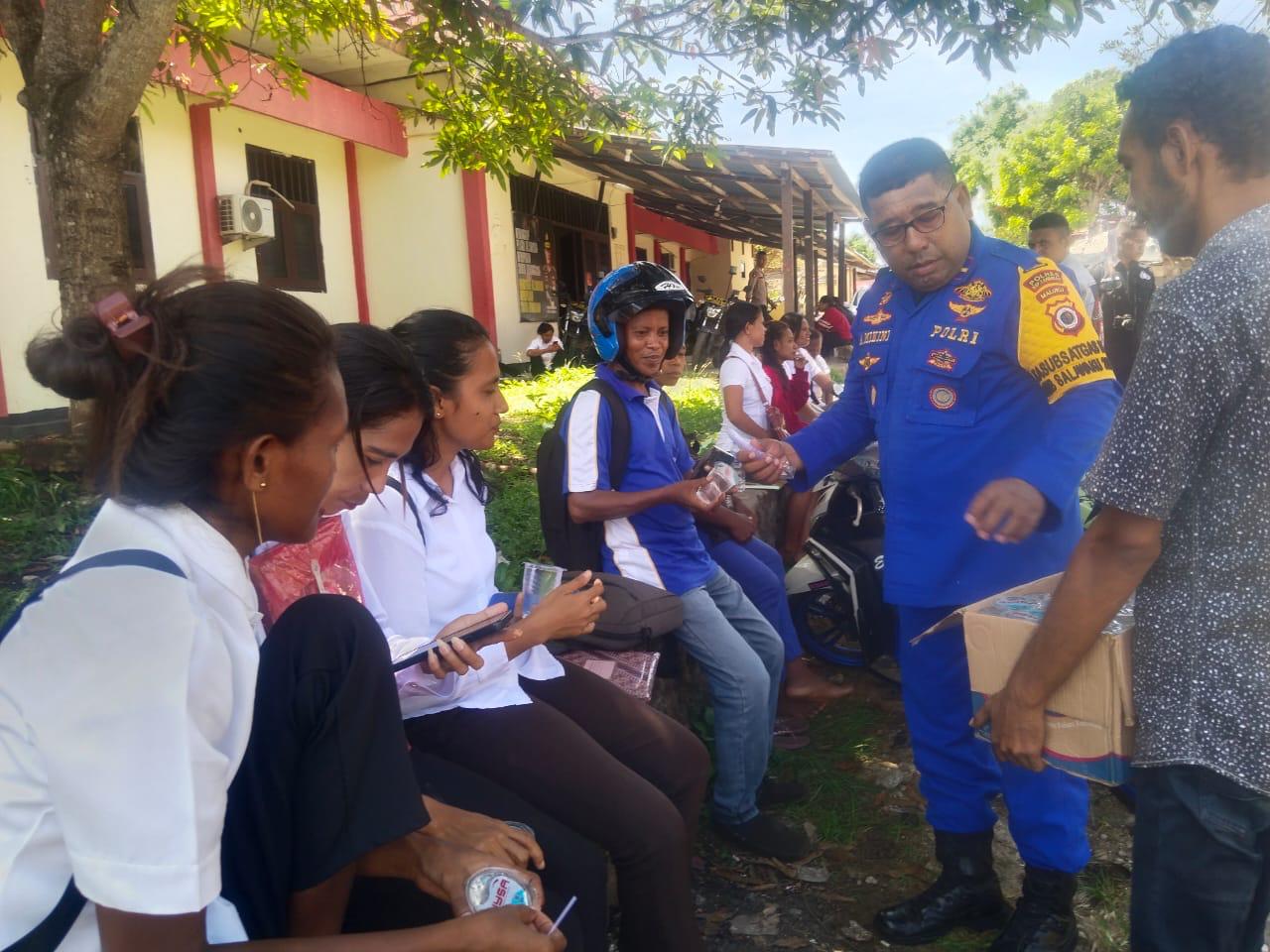 Sebagai bentuk pelayanan kepada Masyarakat yang sementara mengantri dan menunggu proses pengurusan administrasi SKCK dan SKBN, Kasat Polairud Ipda A. MIKINI bagikan Air Mineral kepada Masyarakat, Kamis (04/01/24).