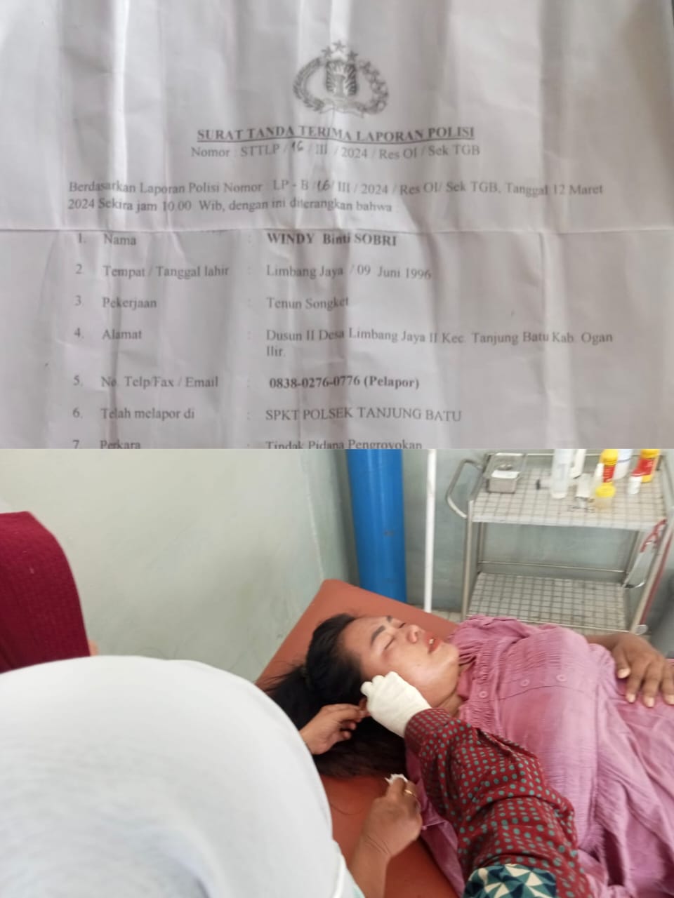 Windy binti sobri, warga dusun II desa limbang jaya II, Kec. Tanjung Batu, Kab. Ogan Ilir, mengalami penganiayaan terhadap dirinya, namun hingga kini pelaku tak kunjung ditangkap. Rabu (24/4/2024)