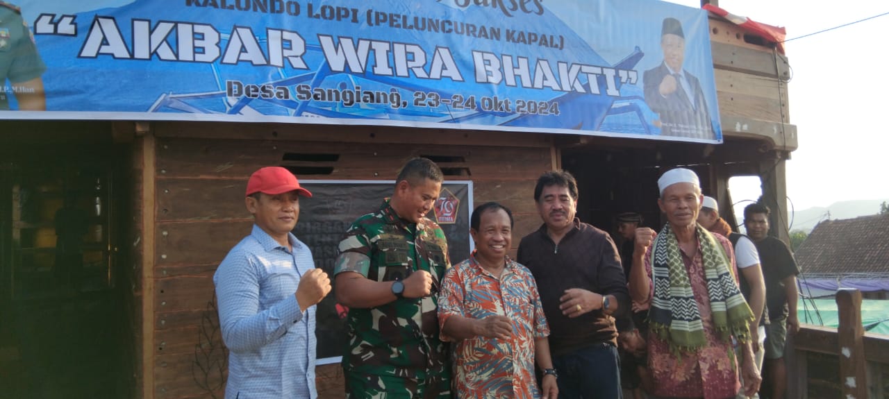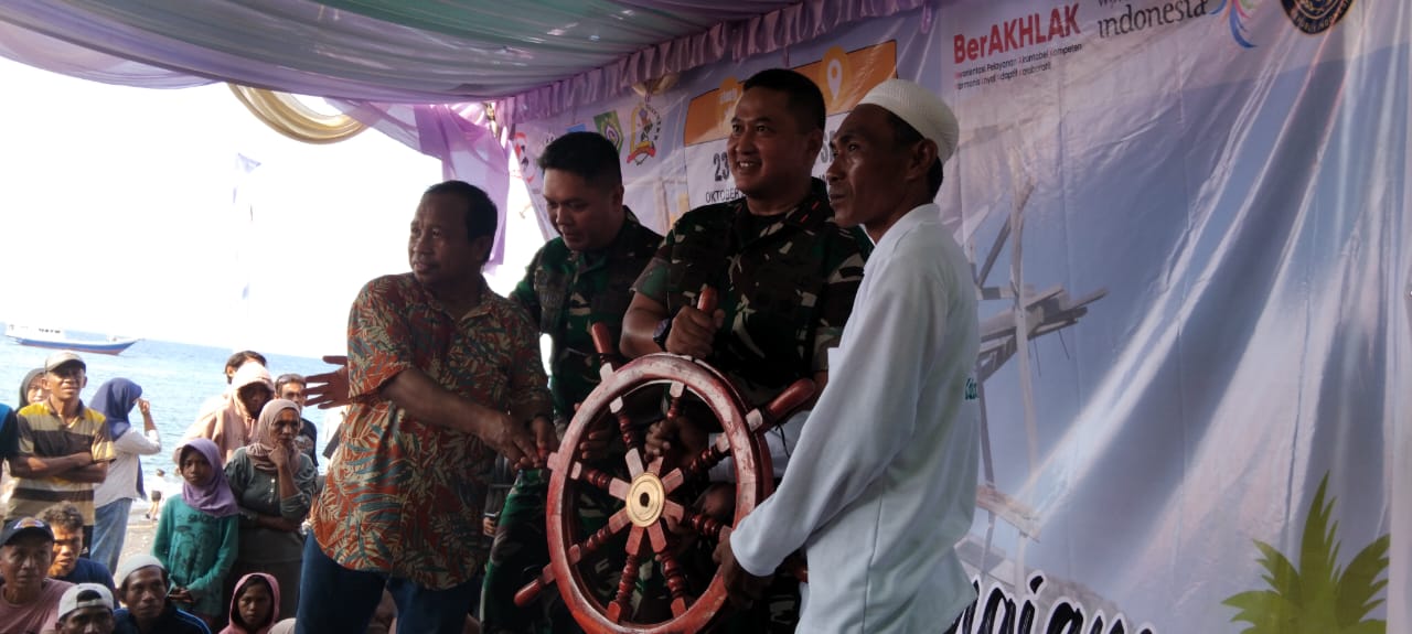 Jadi saya mulai hari ini dan besok kita akan menyaksikan acara Turunkan Kapal bagaimana kapal yang ada didarat untuk di tarik kelaut kita sama sama dan membuktikan bahwa kemanunggalan TNI dan Rakyat benar benar tercipta , TNI adalah bagain dari Rakyat kami menjaga kerukunan dan keutuhan bangsa dan Negara disamping Turunkan Kapal TNI juga melakukan bakti sosial berupa pengobatan gratis bagi seluruh masyarakat Desa Sangiang , ungkap komandan korem 162 Wira bhakti