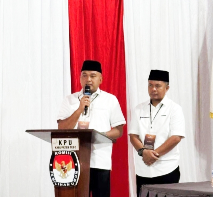 Kamis, 9 Januari 2025, bertempat di Aula Gedung KPU Kabupaten Tebo, Pasangan Calon Bupati Tebo Agus-Nazar di tetapkan oleh KPU Tebo sebagai Pemenang Pemilihan Bupati Tebo Periode 2024-2029 dalam Rapat Pleno Terbuka.