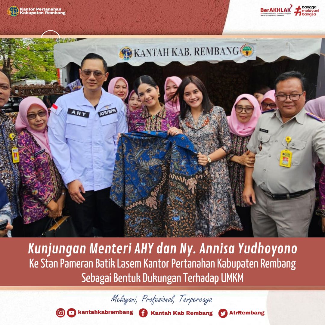 Kunjungan Menteri AHY dan Ny. Annisa Yudhoyono ke Stan Pameran UMKM Batik Lasem Kantor Pertanahan Kabupaten Rembang
