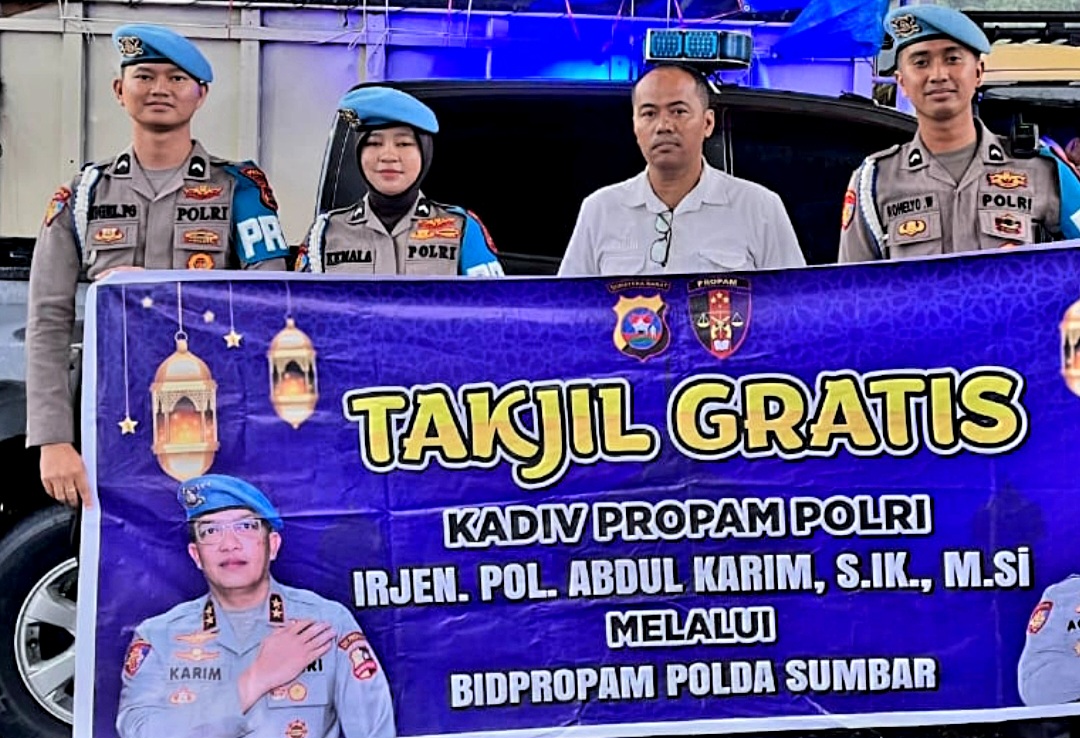 Sumbar, KOMPAS86.COM--Untuk mempererat hubungan antara Kepolisian dan masyarakat serta menunjukkan Kepedulian Polri terhadap warga yang menjalankan ibadah puasa, Bidang Profesi dan Pengamanan (Bidpropam) Polda Sumatera Barat (Sumbar) melaksanakan kegiatan sosial berupa pembagian takjil kepada masyarakat, pada Rabu (5/3/2025) di jalan depan Mapolda Sumbar.
