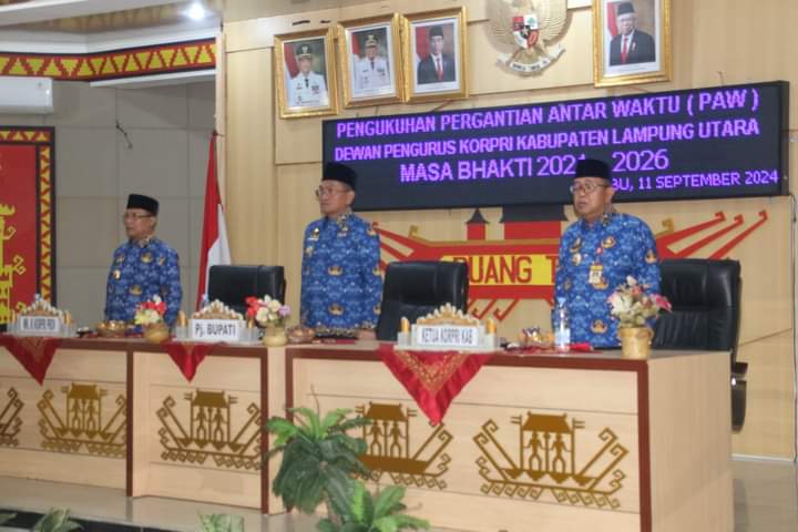 Lampung Utara,Kompas86.Com bertempat di Aula Kantor Pemerintah Kabupaten Lampung Utara, telah dilaksanakan acara pengukuhan Pergantian Antar Waktu (PAW) Dewan Pengurus KORPRI Kabupaten Lampung Utara masa bhakti 2021-2026. Acara ini dibuka oleh Pj. Bupati Lampung Utara, Drs. H. Aswarodi, M.Si., dan dihadiri oleh berbagai pejabat penting di lingkungan pemerintahan Kabupaten Lampung Utara.(11/09/2024)