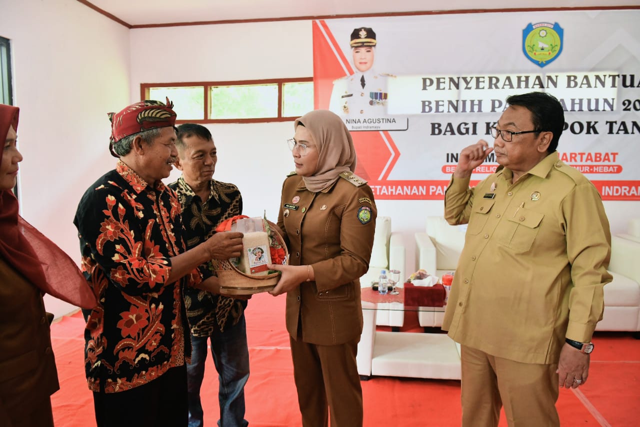 Untuk ketersediaan benih padi yang ada di petani, Bupati Indramayu Hj. Nina Agustina menyerahkan bantuan benih padi kepada 722 kelompok tani (Poktan) yang tersebar di 22 kecamatan, Senin (12/2/2024) di Balai Benih Hortikultura DKPP Desa Kebulen Kecamatan Jatibarang.