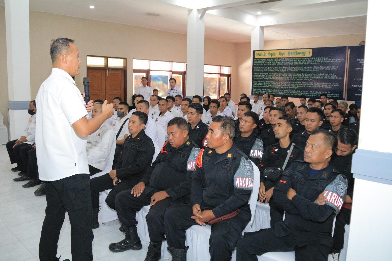 “Laksanakan tugas dengan baik dan penuh integritas. tempatkanlah harga diri/ marwah kita sebagai petugas pemasyarakatan dalam membina warga binaan menuju ke jalan yang benar”, ungkapnya.