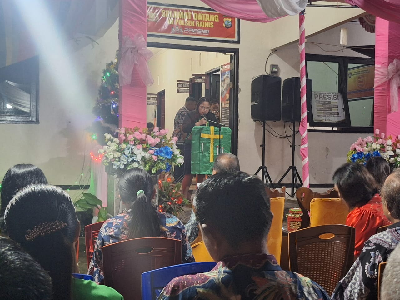 Keluarga besar Polsek Rainis menggelar Ibadah Pra Natal Yesus Kristus, Kamis (12/12/2024) petang.