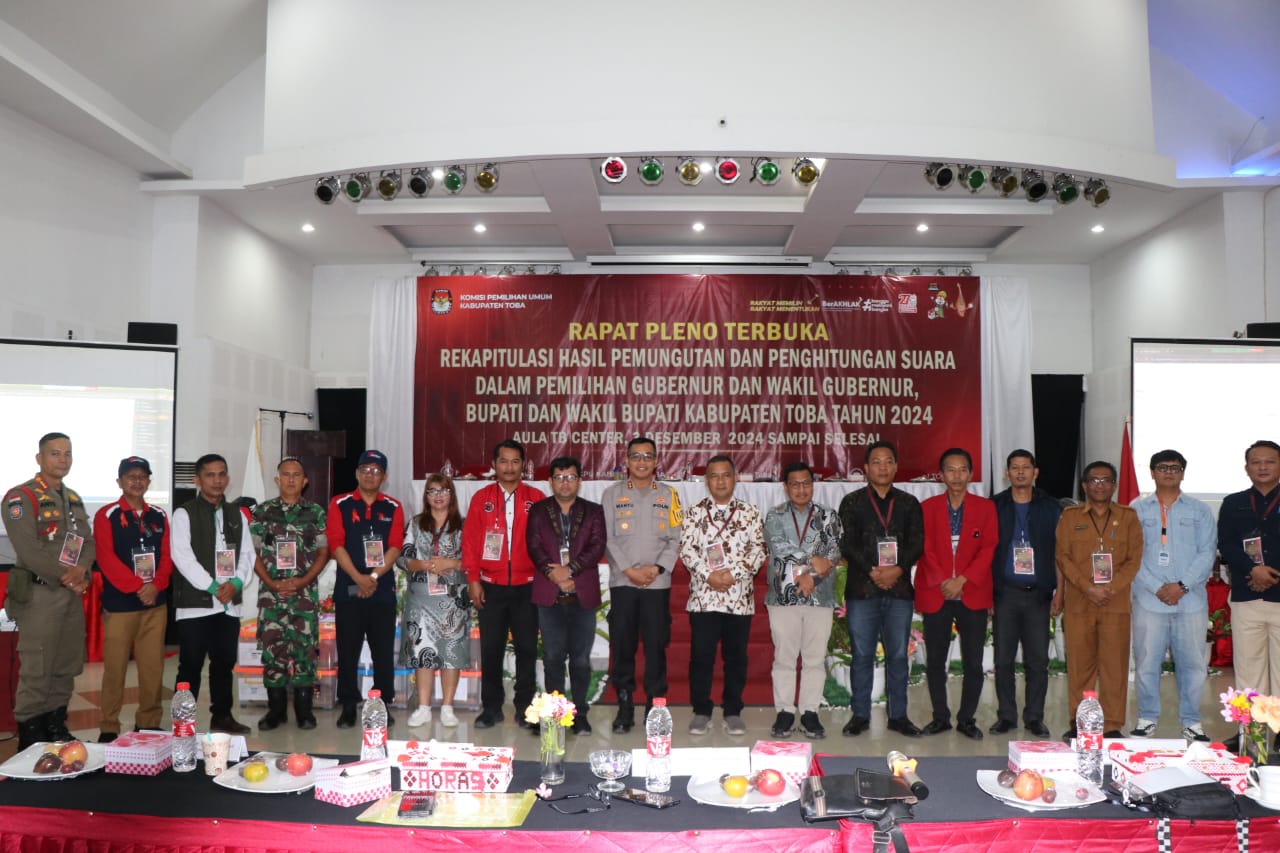 BALIGE TOBA ( SUMUT ) kompas86.com.Komisi Pemilihan Umum Kabupaten Toba menggelar Rapat Pleno Terbuka Rekapitulasi Hasil Pemungutan dan Penghitungan Suara Dalam Pemilihan Gubernur dan Wakil Gubernur, Bupati dan Wakil Bupati Kabupaten Toba Tahun 2024. Rapat Pleno Terbuka ini digelar di Aula TB. Center, Balige dan berlangsung selama 2 hari, terhitung sejak Selasa-Rabu (3-4/12/2024). Rekapitulasi tingkat kabupaten ini dilakukan setelah sebelumnya rekapitulasi di setiap kecamatan selesai dilakukan.