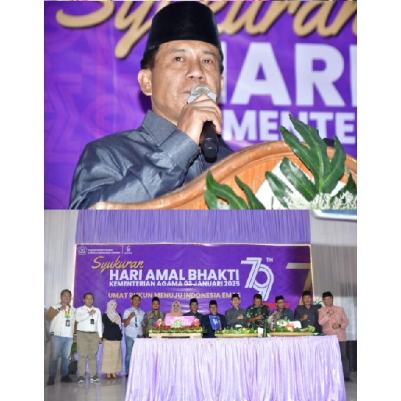 Hari Amal Bhakti Kementerian Agama ke-79 Dengan Tema ” Umat Rukun Menuju Indonesia Emas “tahun 2025 diharapkan dapat menjadi momen yang memberikan inspirasi bagi seluruh masyarakat Indonesia untuk terus menghargai dan merayakan keberagaman sebagai kekuatan bersama dalam membangun bangsa yang adil, makmur, dan berkeadilan.,*M*