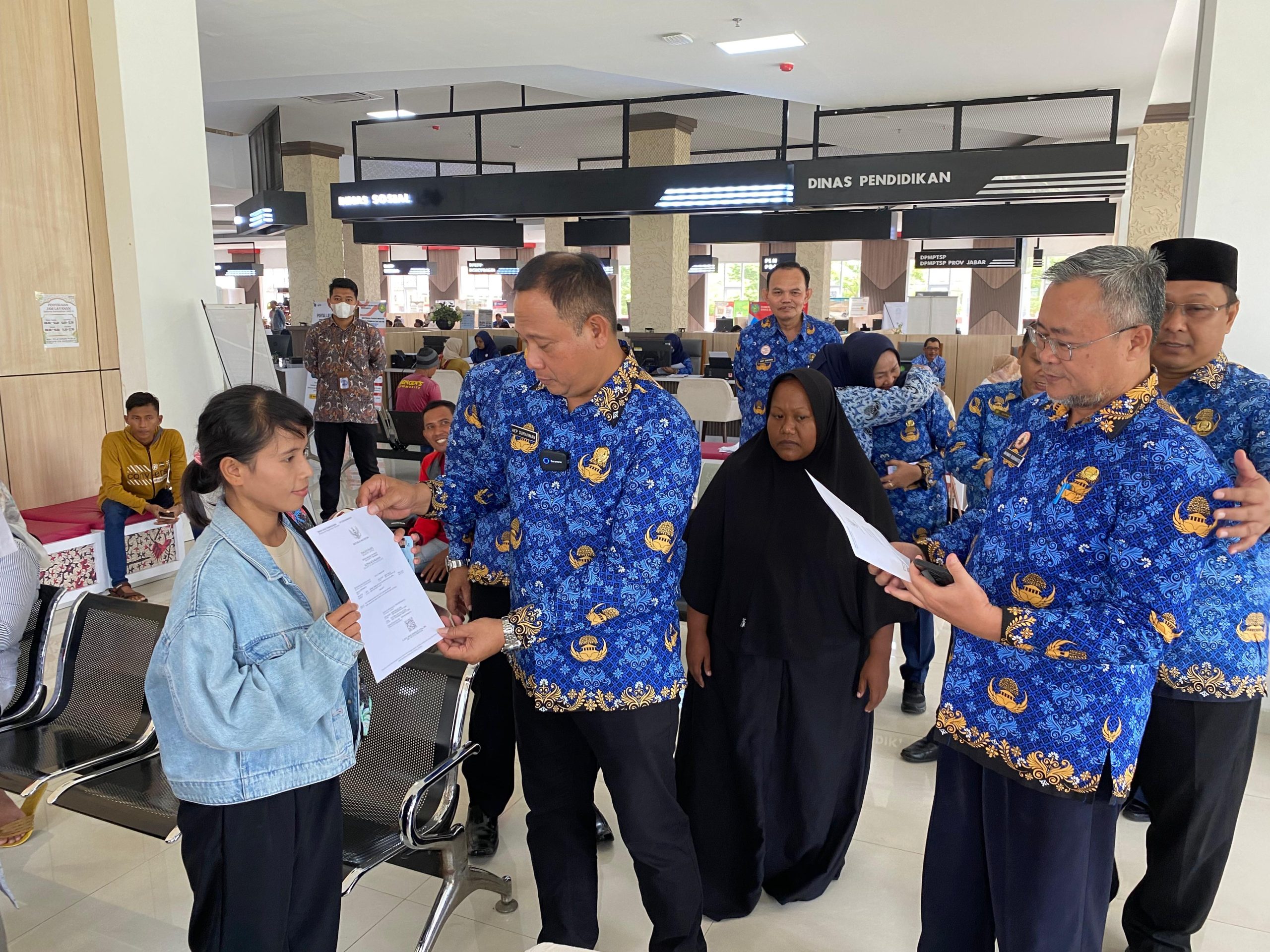 Setelah dari kantor Kecamatan Sindang, selanjutnya monitoring dilaksanakan di Mal Pelayanan Publik (MPP), di tempat ini Sekda mengecek loket/tenant layanan publik yang tersedia dan langsung menyerahkan beberapa dokumen hasil layanan kepada masyarakat.