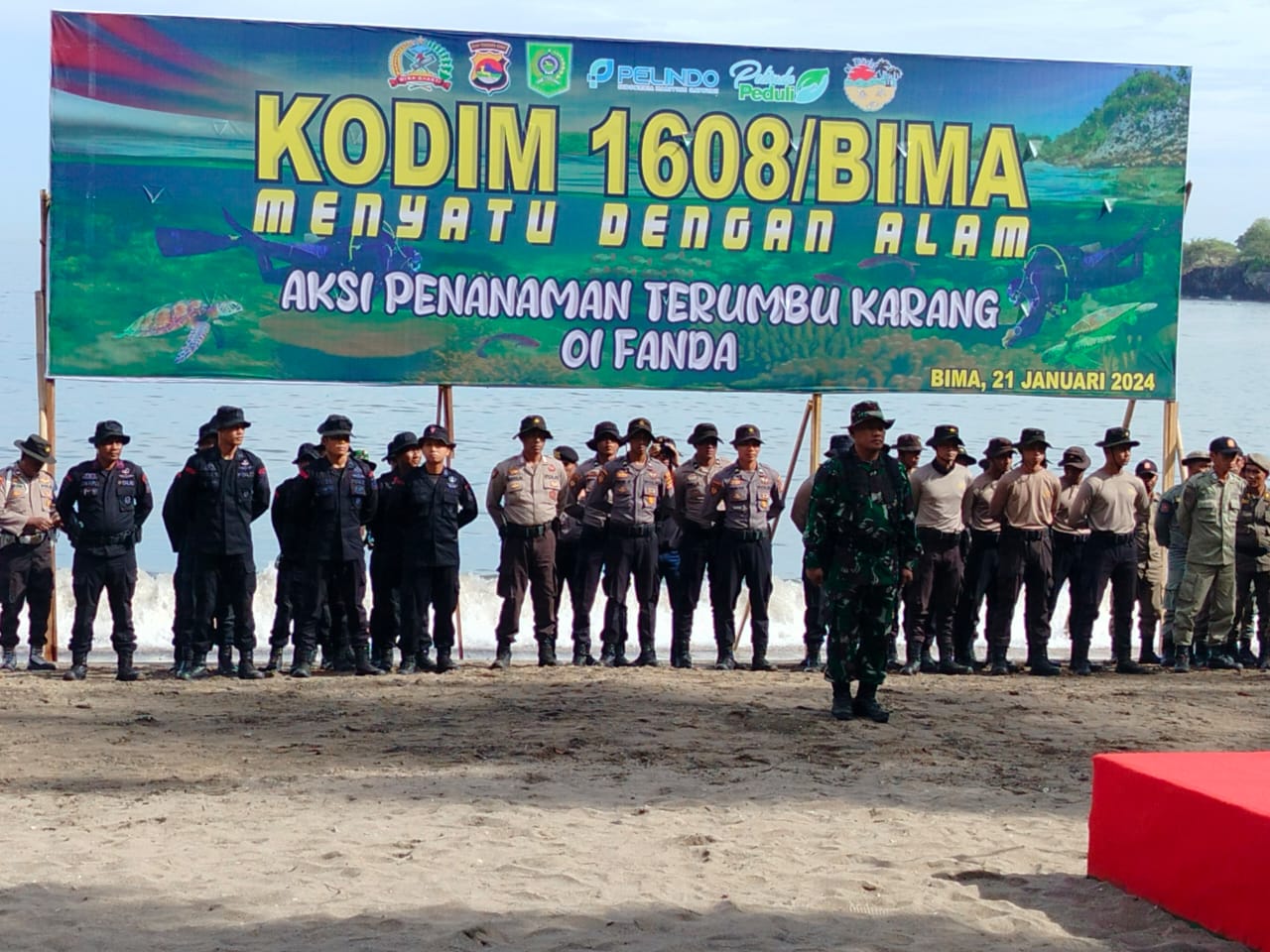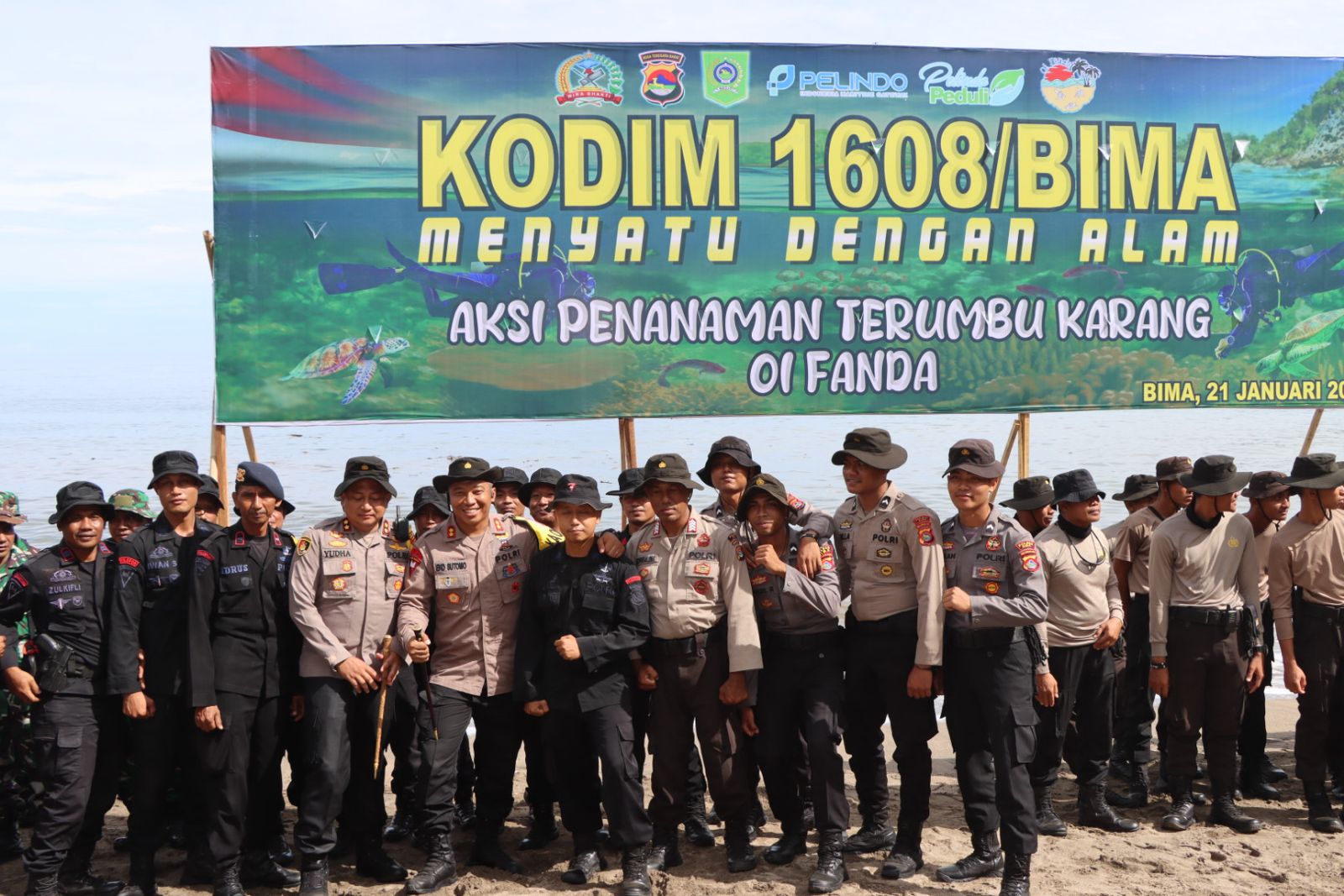 “Kegiatan ini merupakan wujud kepedulian TNI-POLRI terhadap keberhasilan dan terjaganya terumbu karang serta ekosistem laut lainnya” Ungkap Kapolres mengutip Adib.