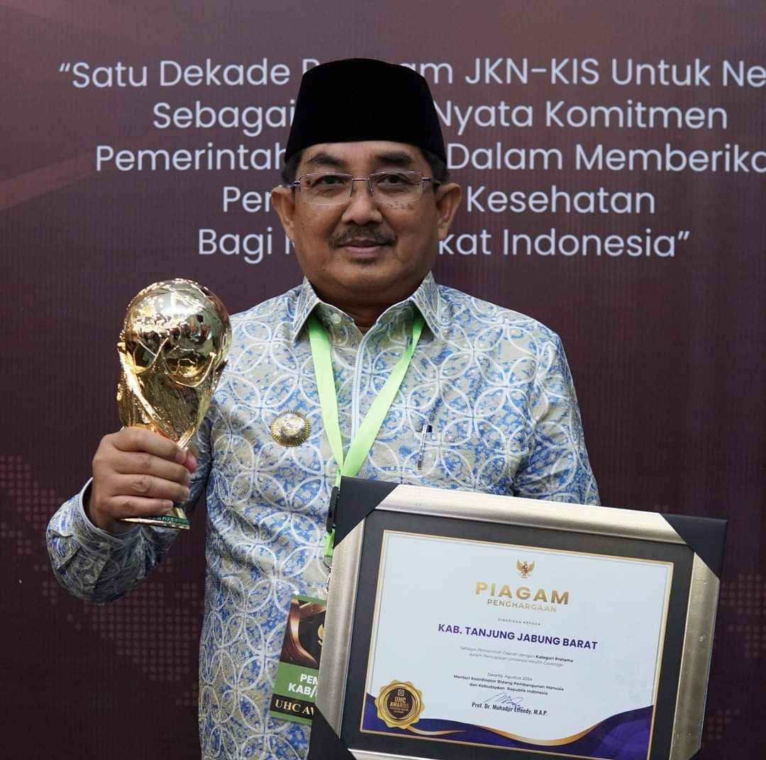 Kabupaten Tanjung Jabung Barat menjadi salah satu dari lima kabupaten/kota di Provinsi Jambi yang berhasil meraih penghargaan UHC. Penghargaan ini diberikan sebagai pengakuan atas capaian 95% penduduk Tanjung Jabung Barat yang telah terdaftar sebagai peserta JKN-KIS. Selain itu sebanyak 33 Provinsi 460 kabupaten/kota juga memperoleh UHC. Secara nasional, cakupan UHC pada tahun 2024 mencapai 98,19%.