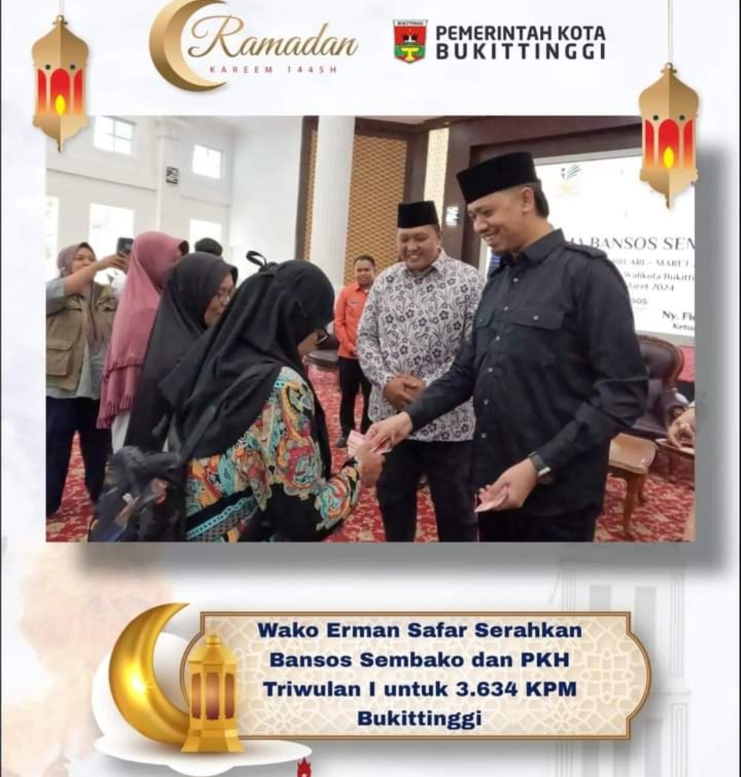 Wali Kota Bukittinggi, Erman Safar, menyampaikan, penerima bantuan sosial sembako triwulan I periode ini, diberikan dari bulan Februari hingga Maret. Keluarga Penerima Manfaat adalah warga Bukittinggi yang terdaftar pada DTKS. Bantuan diberikan sebesar Rp 400.000,- per KPM.
